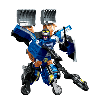 경찰 카봇으로 경찰차량에서 분리. 요요처럼 늘어나는 수갑과 방패, 경찰봉이 무기